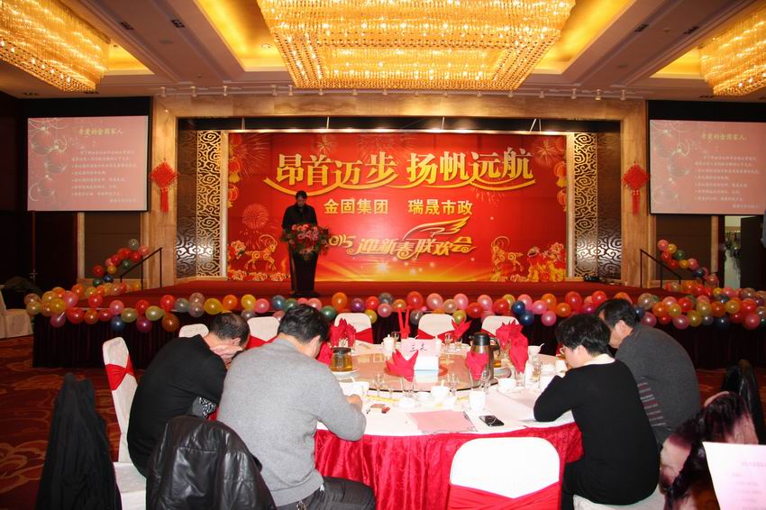 2015年2月8日下午,南京市雙門樓賓館紫金廳內處處張燈結彩,偌大的大廳內充滿了歡聲笑語,洋溢著喜慶的節日氣氛。南京金固建設(集團)有限公司全體員工歡聚一堂,共同分享辛勤一年來收獲的喜悅,迎接新春佳節的到來。